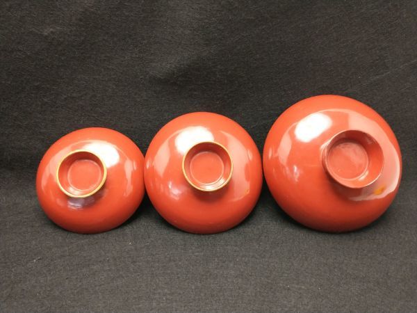 Vintage Lacquerware Sake Cup Set 3 pcs Large Medium Small Retro Antique